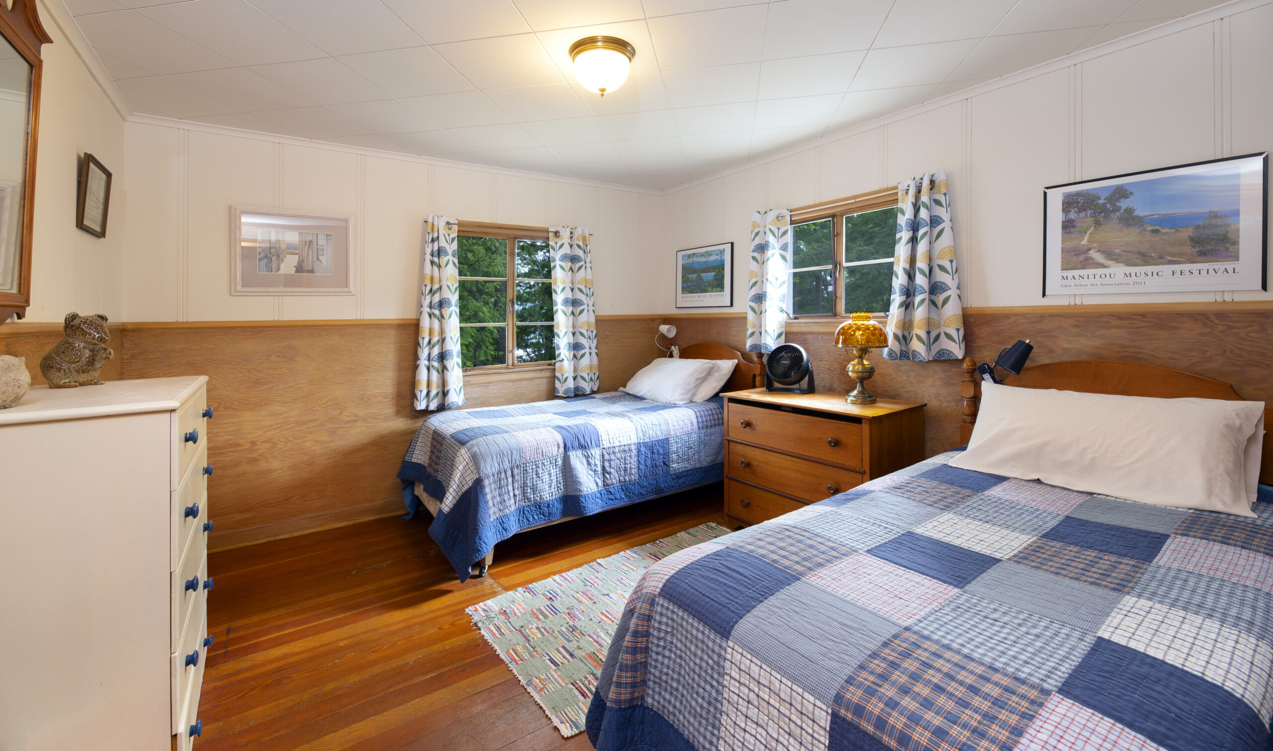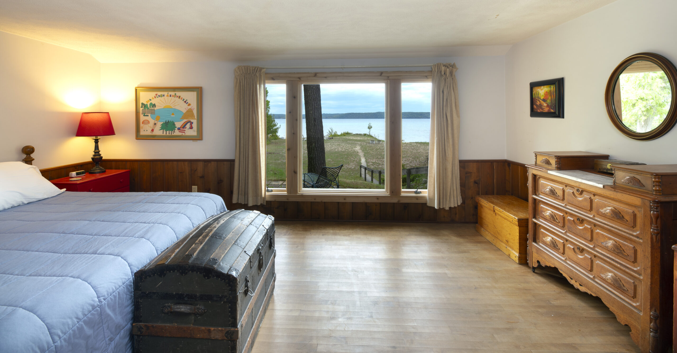 A truly special place, the Campbell Cottage is nestled on the North shore of Big Glen Lake. Days spent sunbathing or fishing on the crystal clear water, dinner on the deck, or campfires in the evening. The master suite has a king bed, large picture window and is separated from the other rooms. (2nd bedroom) 2 twin beds with an attached half bath. (3rd bedroom) 2 twin beds. (4th bedroom) has a set of bunk beds. The cottage will draw you in with its vintage charm but the outside amenities is where you will want to be.