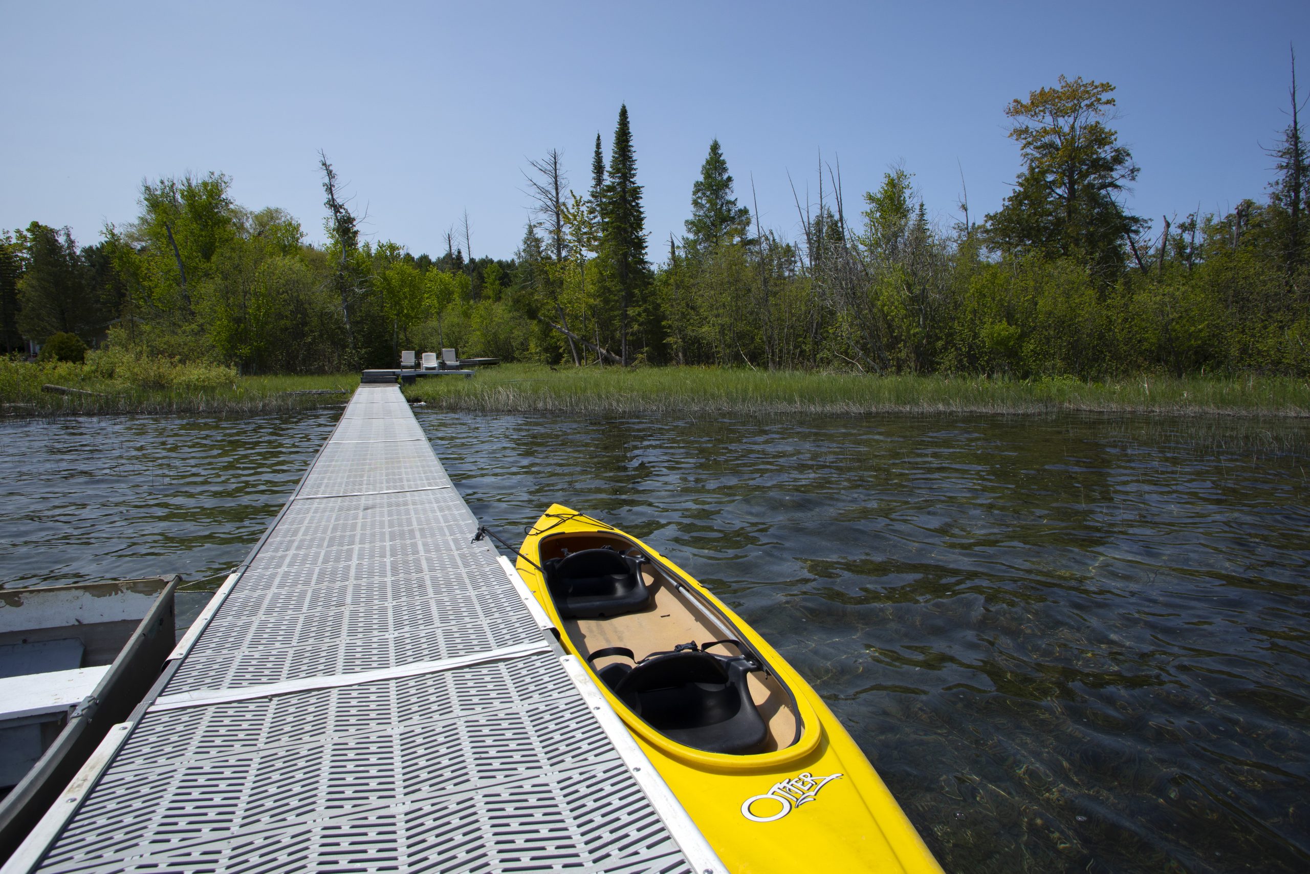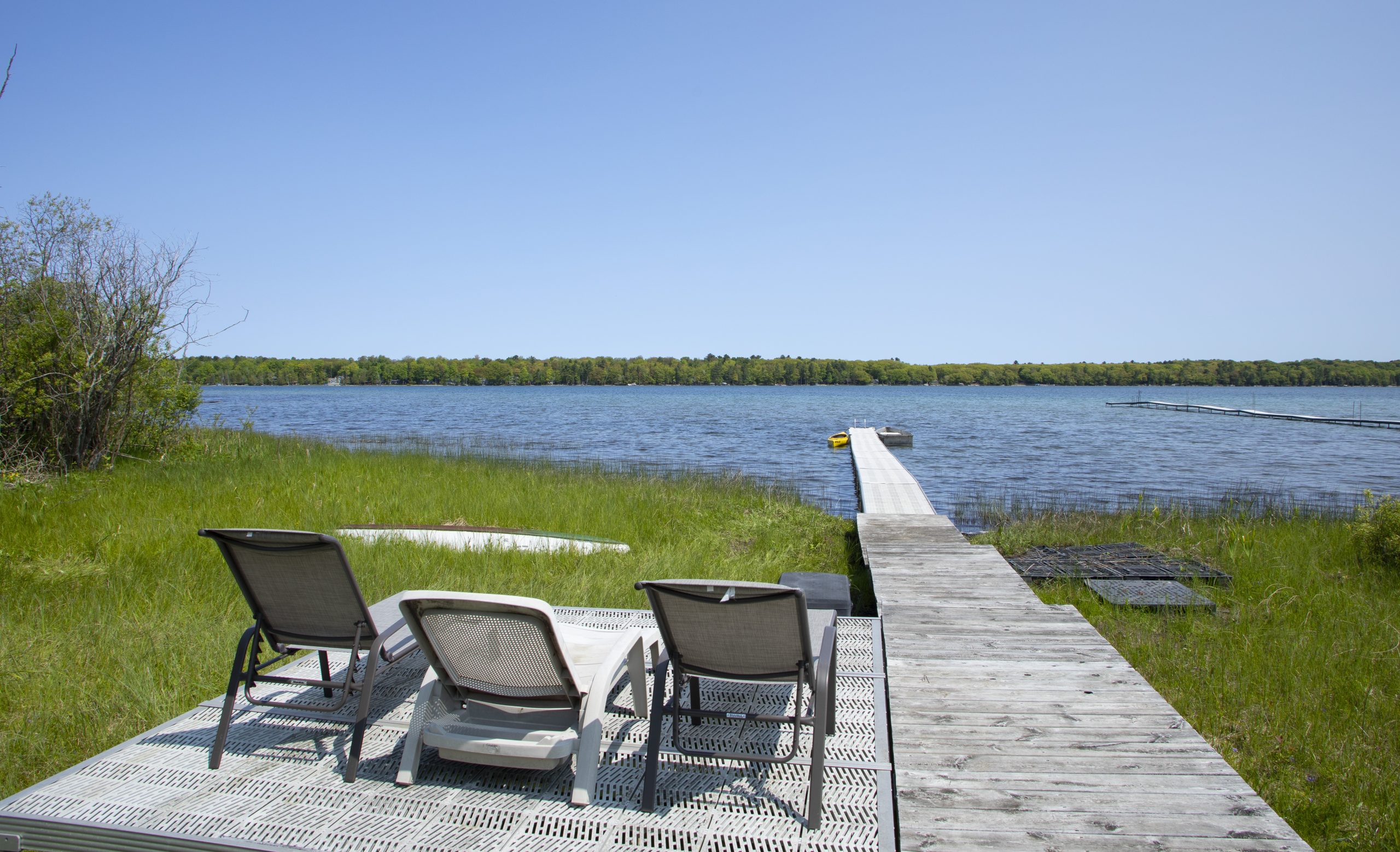 The master suite is featured in the loft. Private space with another TV and lake view. Two more bedrooms are on the main level featuring a full in the second bedroom and 2 twins in the third. The main level open floor plan leads out to the large deck. Private deck leads down to the water where your row boat and 2 person kayak await.