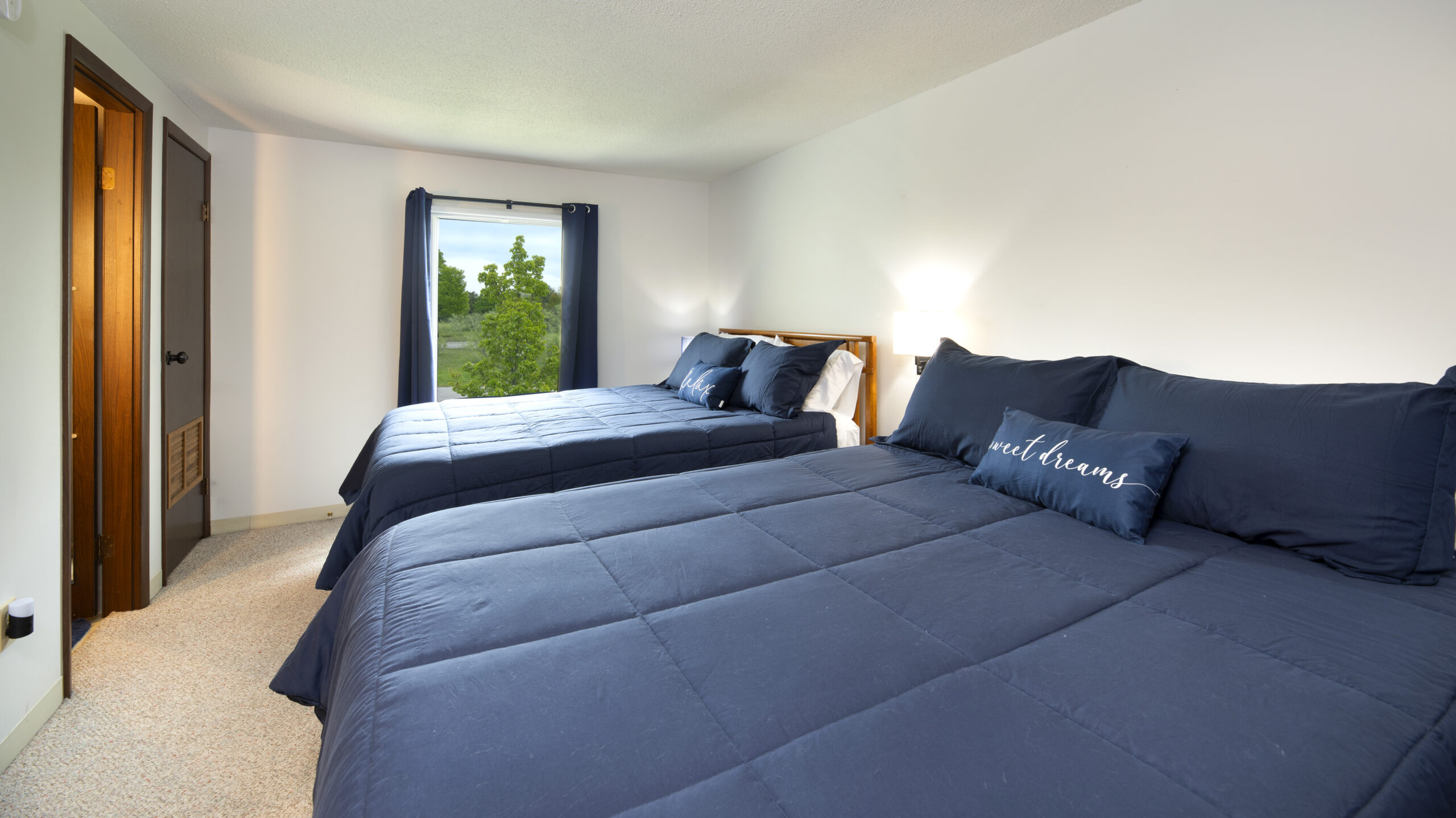 The second bedroom has 2 queen beds and another full bathroom. The kitchen is very well stocked and ready for your family meals. The open living area leads to the lower deck and pool.