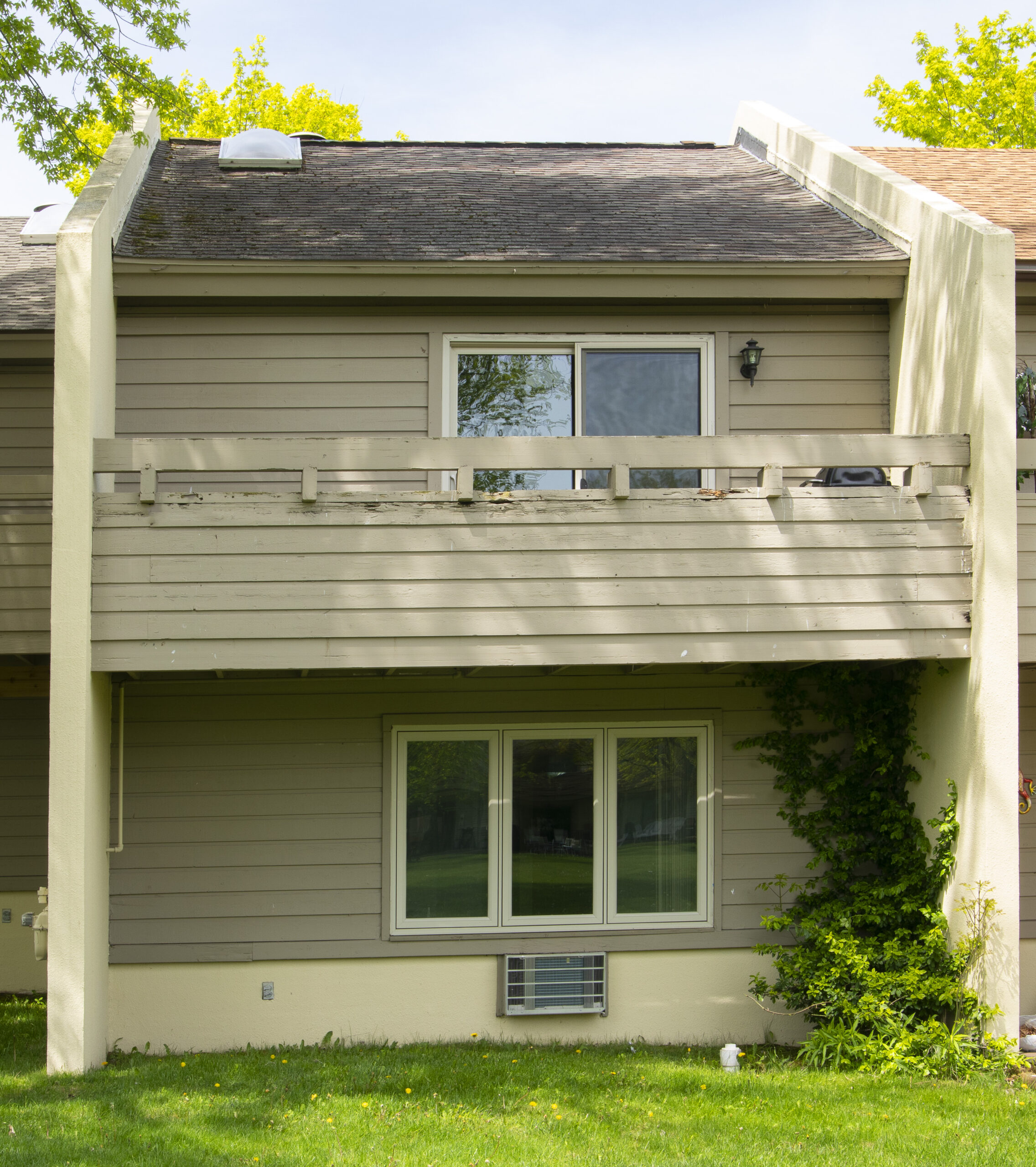 Two bedrooms are on the main level with a queen in the master and 2 sets of bunk beds in the other. Each bedroom has a full bath. Upstairs has a spacious living room, another full bath and ladder to the private loft. Take your pick which balcony to enjoy first.